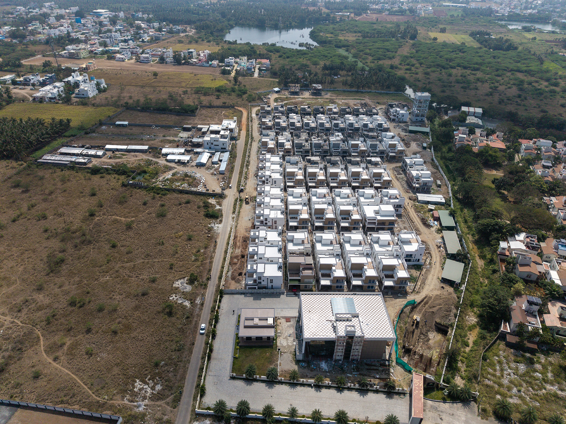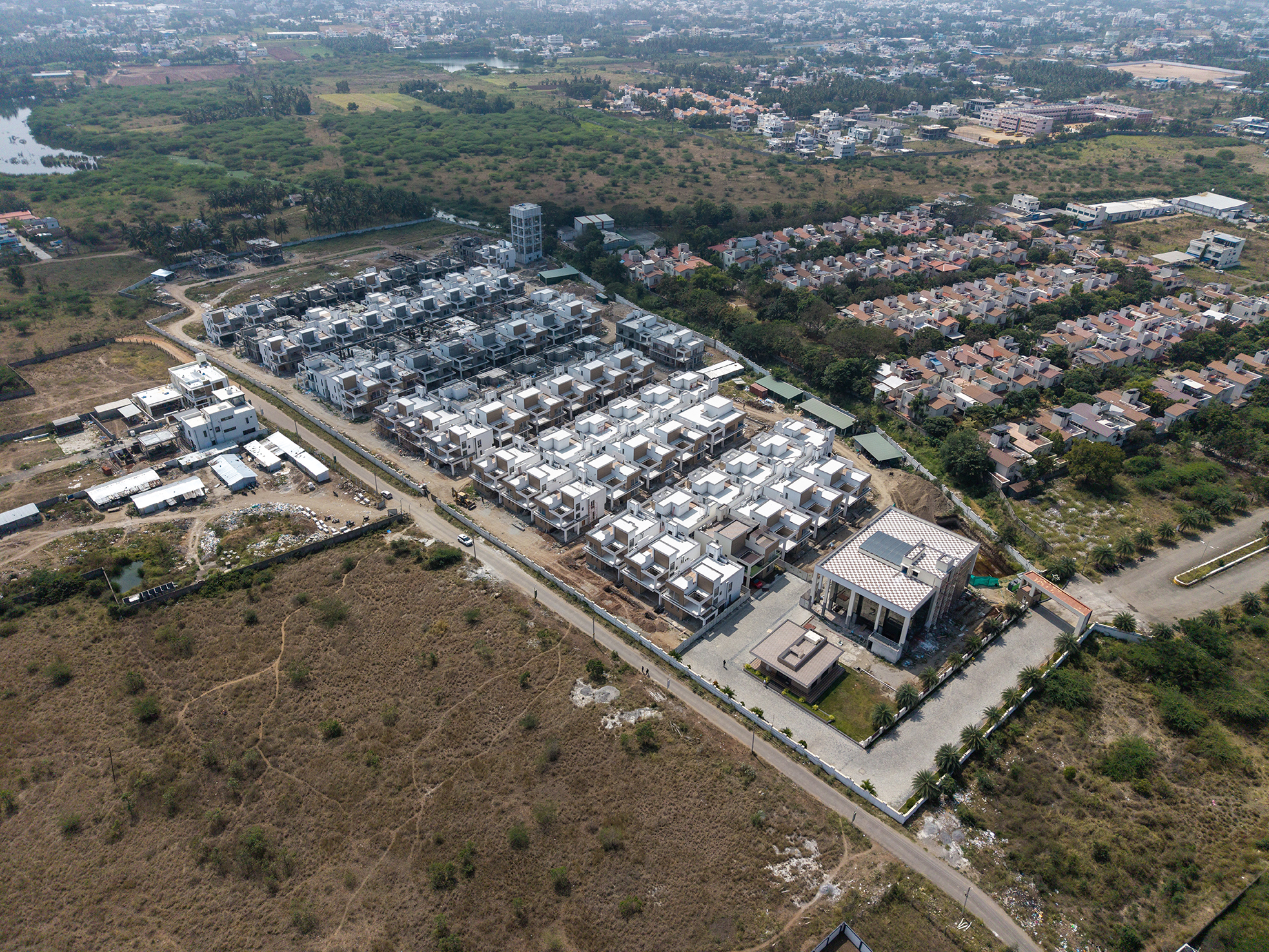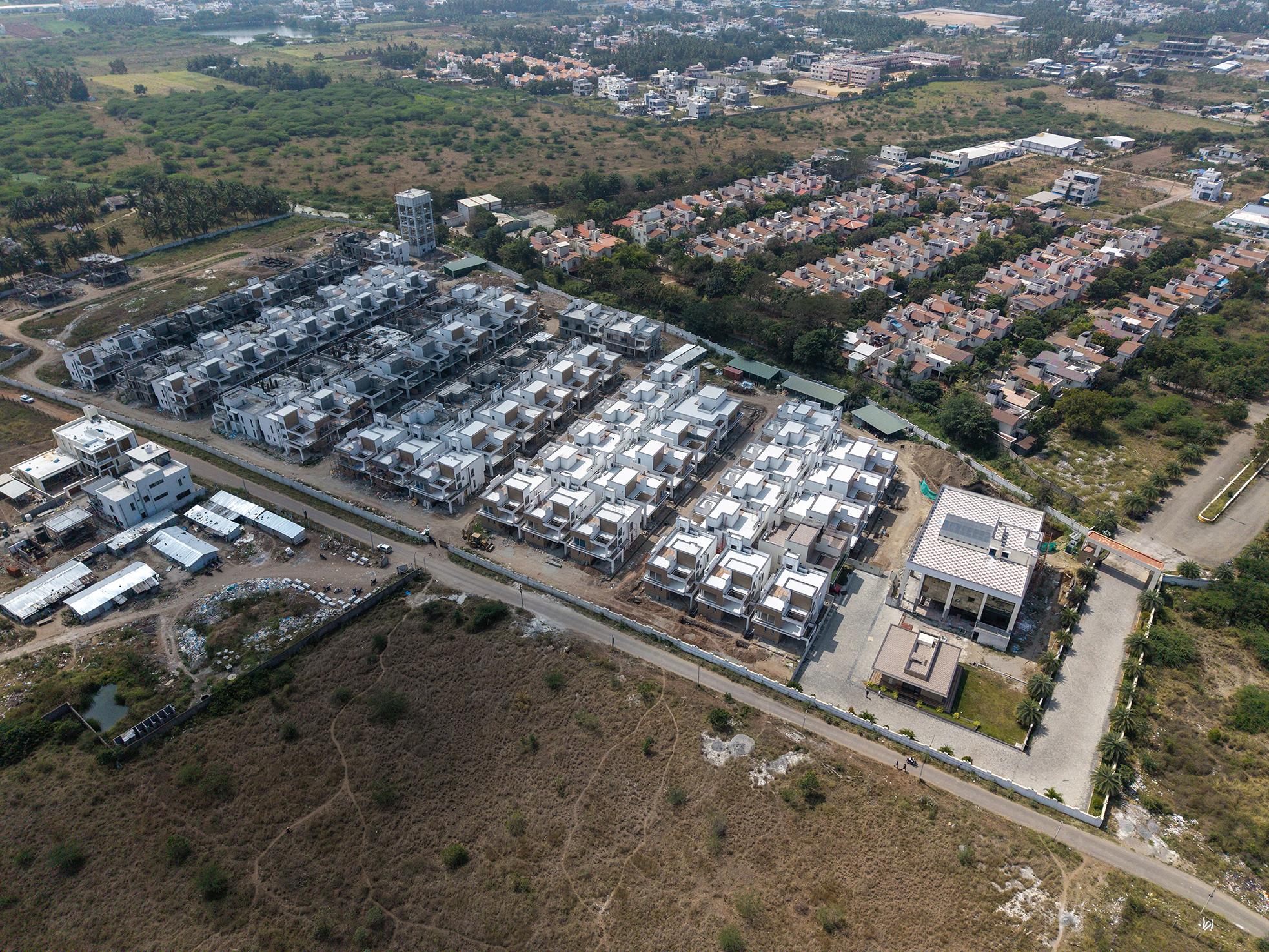 Natural Beauty and Modern Luxury: Lush greenery envelops these ultra luxury villas, offering residents a serene living experience in Coimbatore.