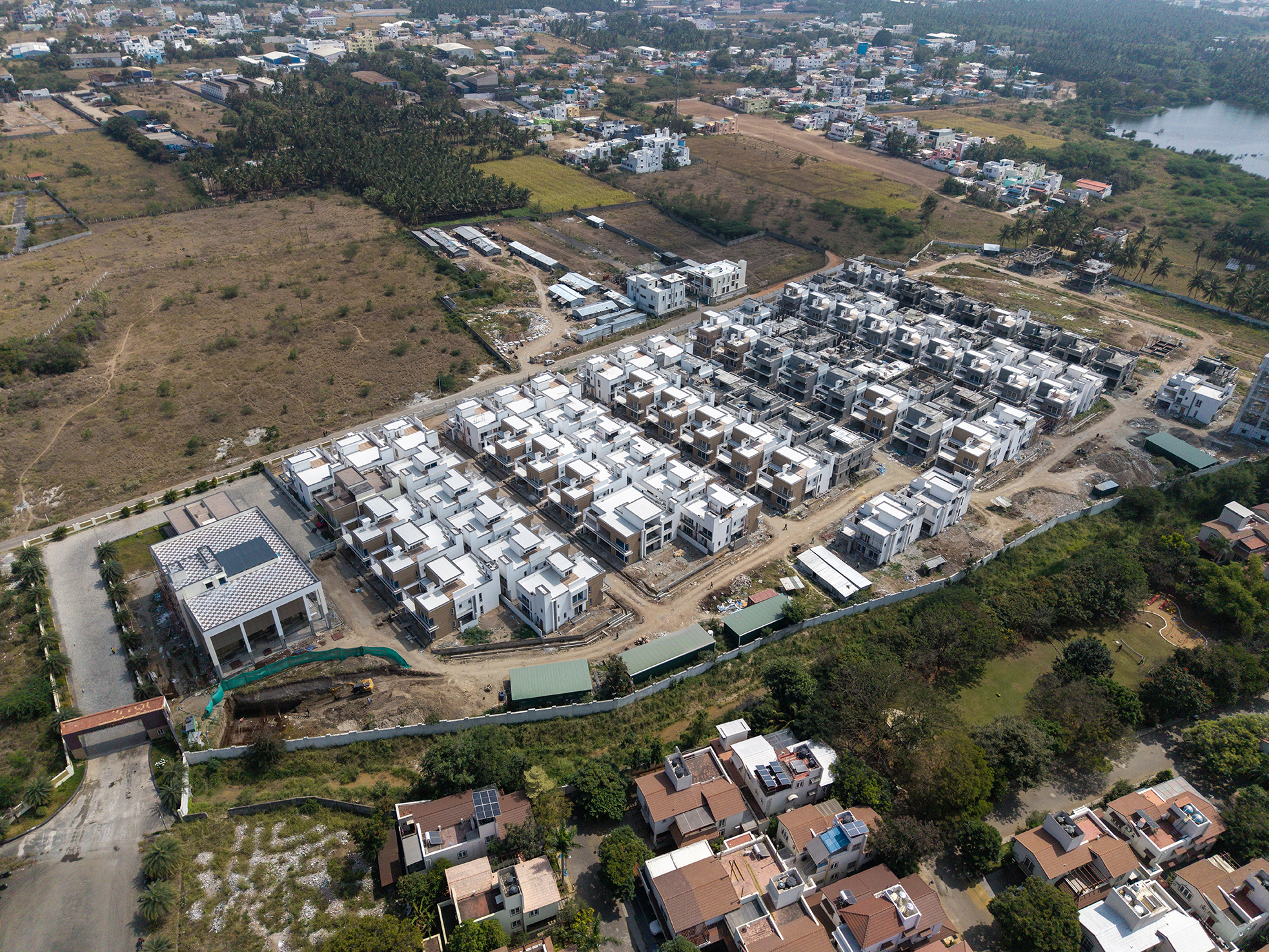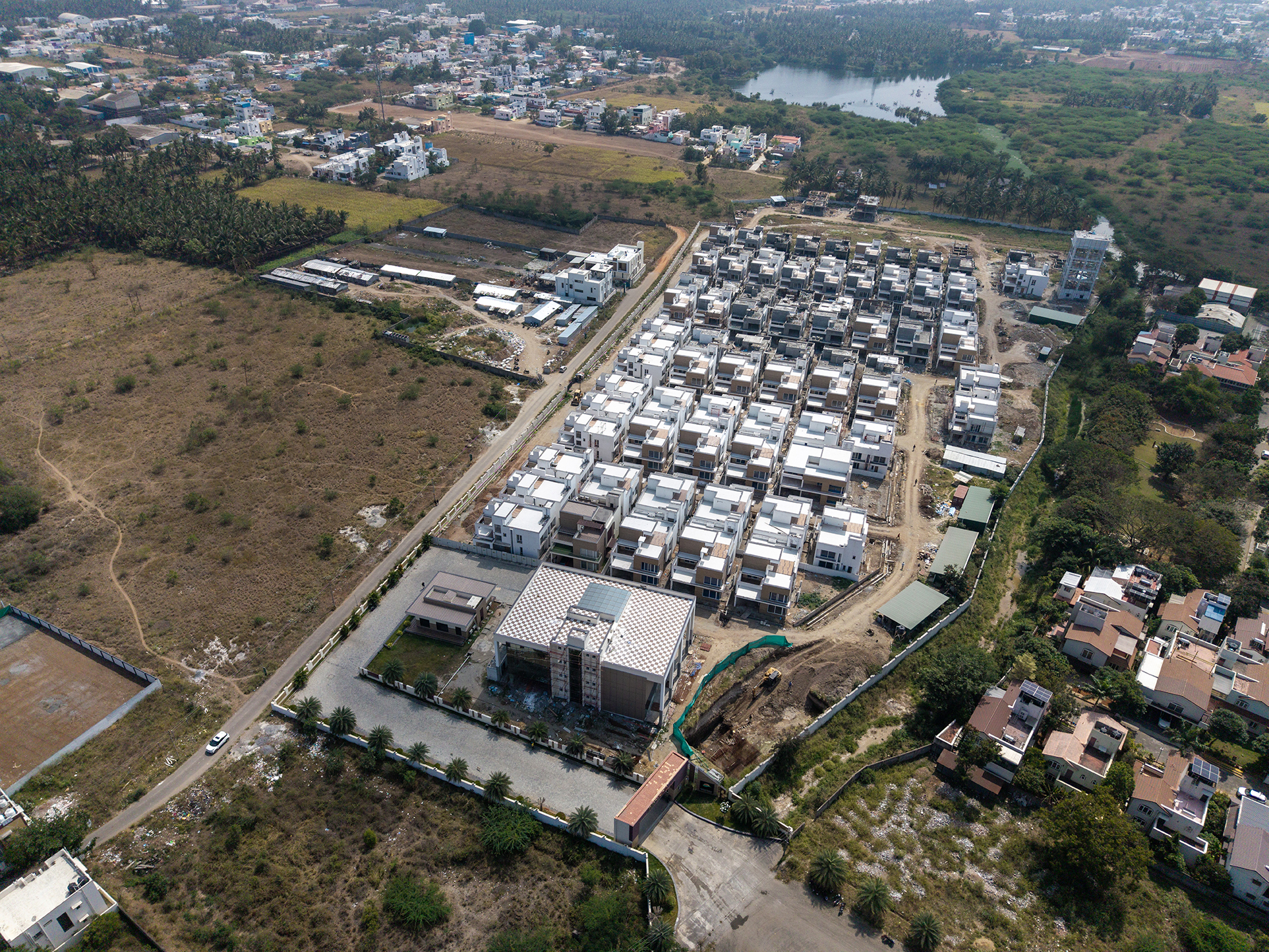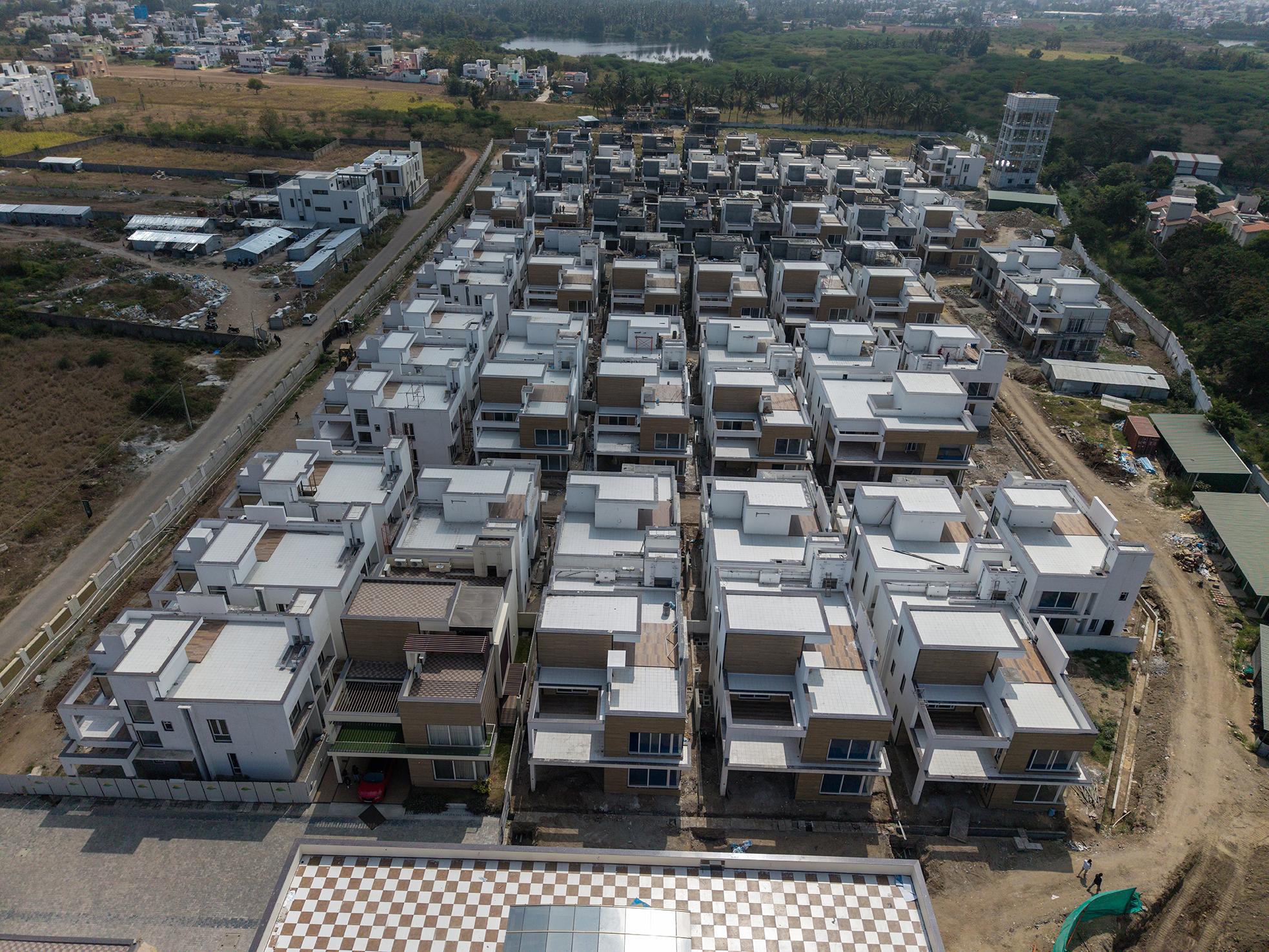 Natural Beauty and Modern Luxury: Lush greenery envelops these ultra luxury villas, offering residents a serene living experience in Coimbatore.